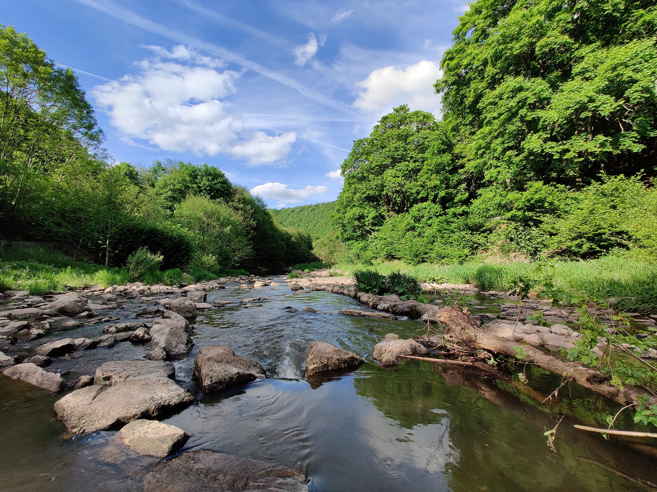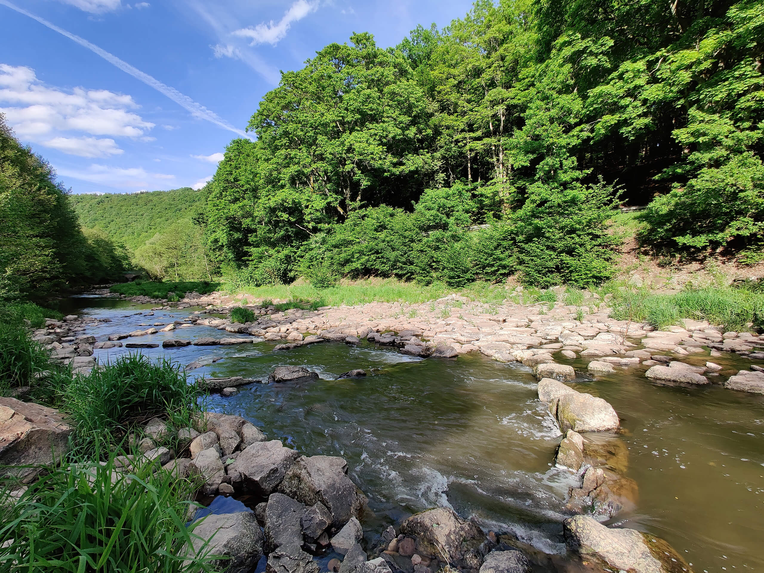 Bei dem durch das Tal fließenden Fluss handelt es sich um ein Gewässer der 1. Ordnung, die Zuständigkeit liegt daher beim Bundesland, nicht bei der Kommune oder dem Grundstückseigentümer. Die Gewässergüte wurde nach unserer Kenntnis zuletzt 2004 auf Stufe II eingestuft.
