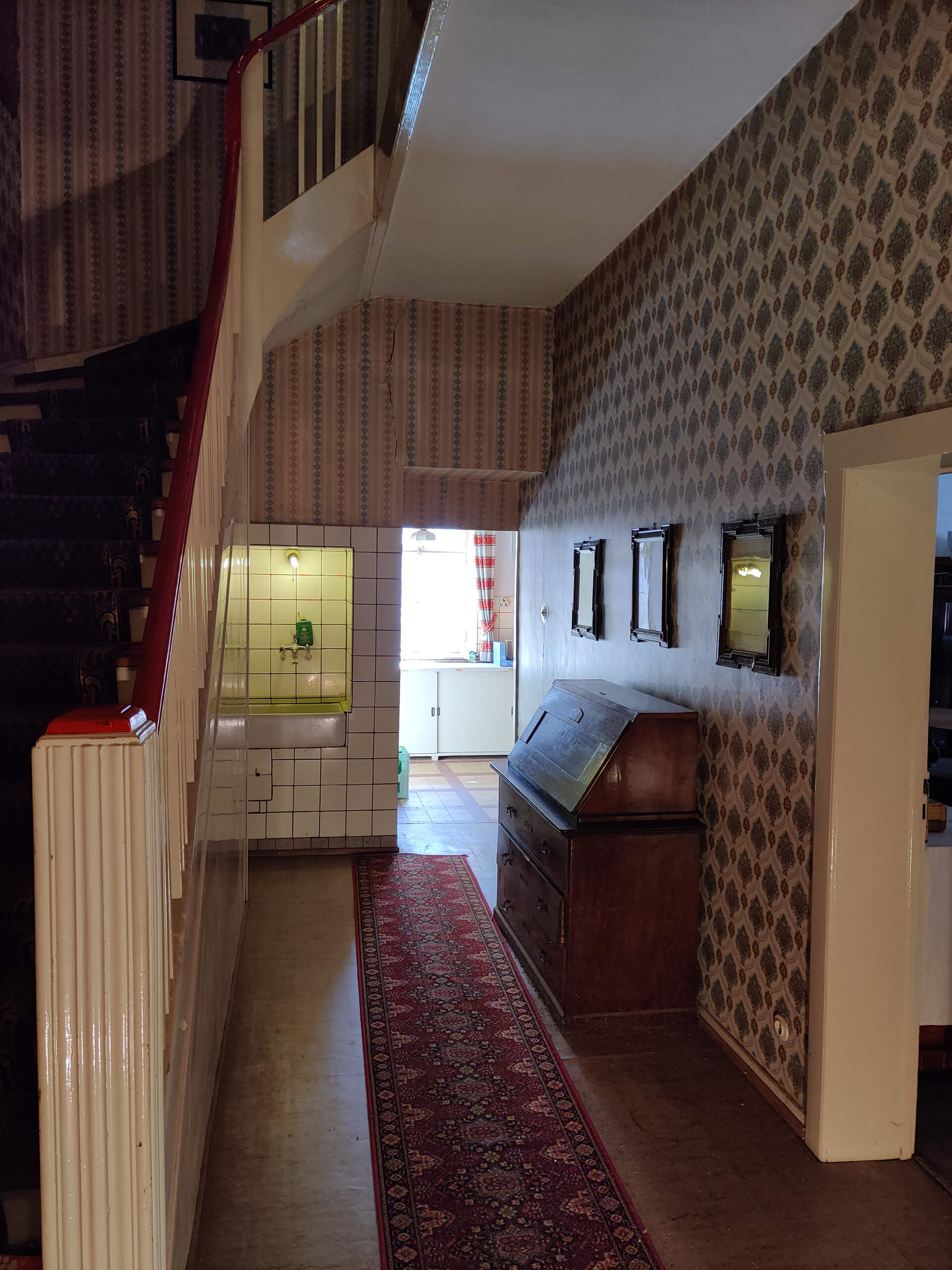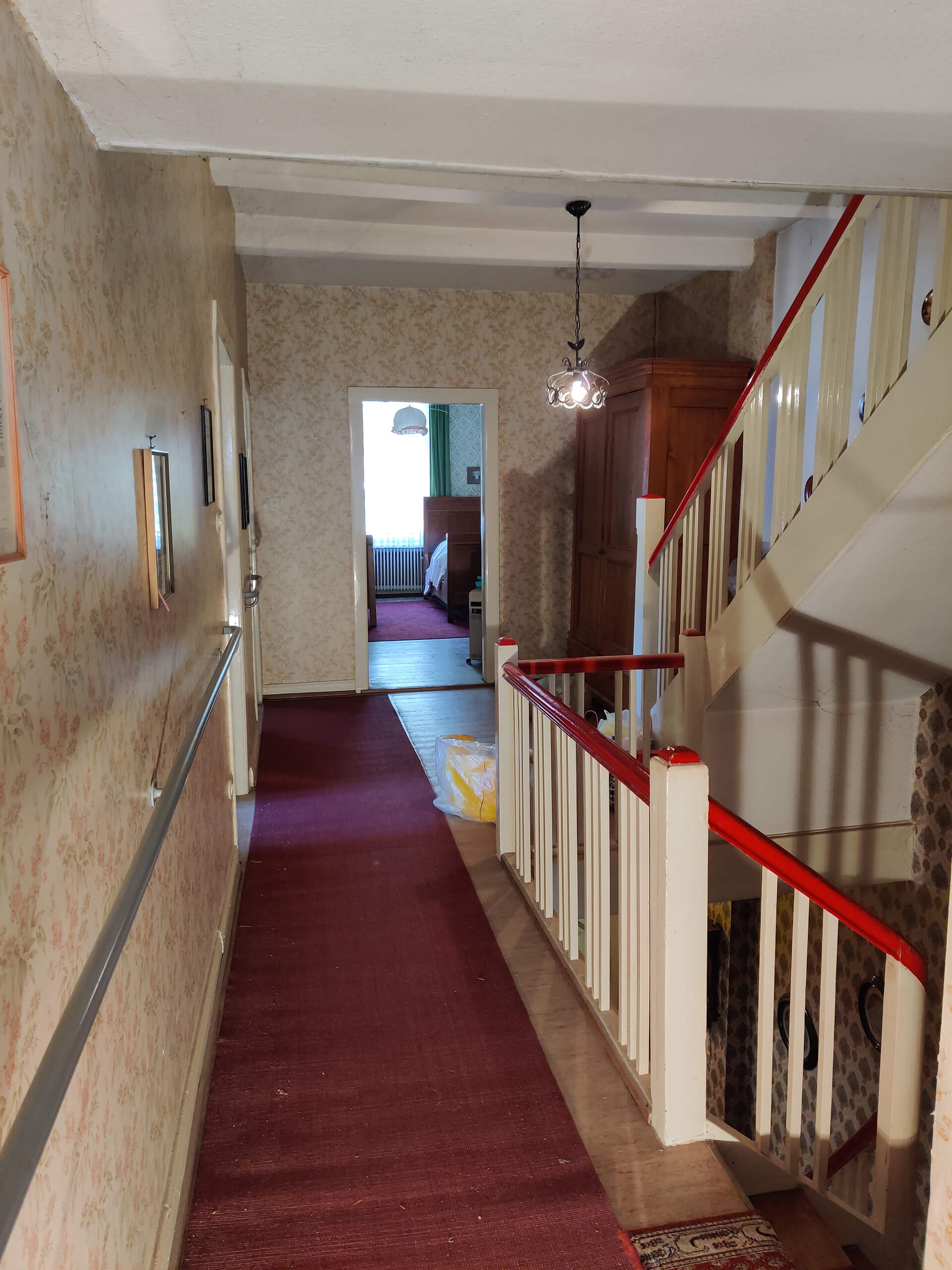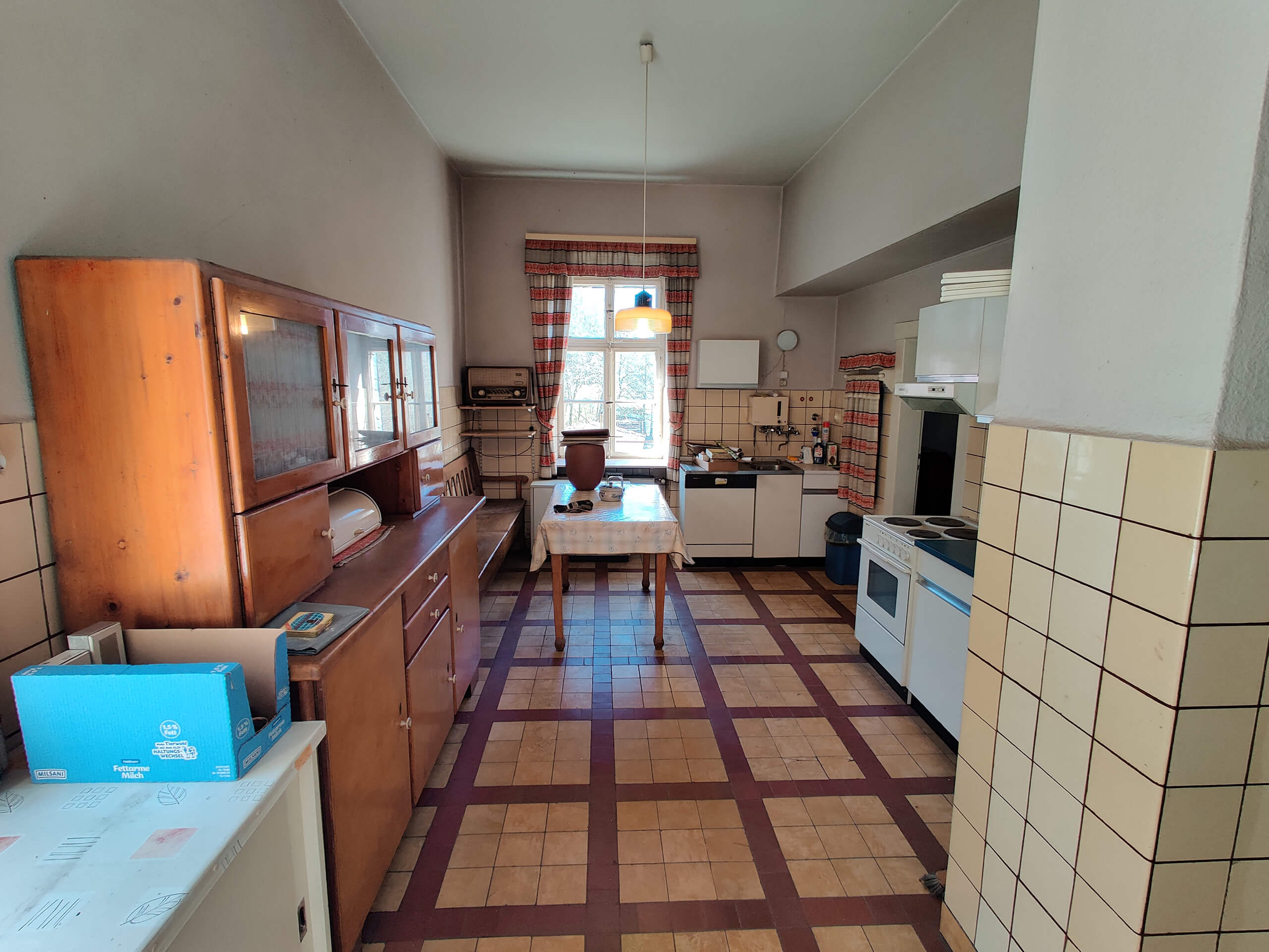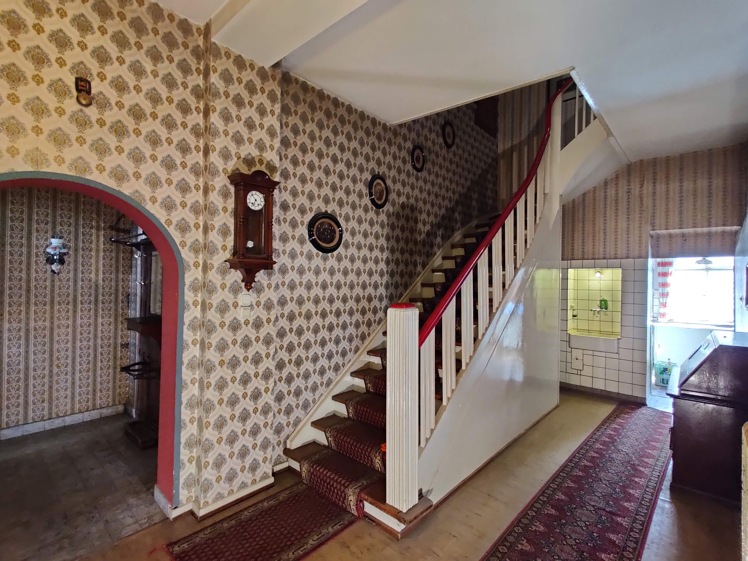 - Hieran angefügt: Sanierungsbedürftiges Wohngebäude (Renovierung bereits begonnen) mit Klinker-Fachwerkfassade, Galerie-Laubengang und 3 Wohnungen (89 + 104 + 108 m²) in 4 Etagen. Garten am Mühlgraben. Große Parkflächen, Vorsitz/Freisitz.